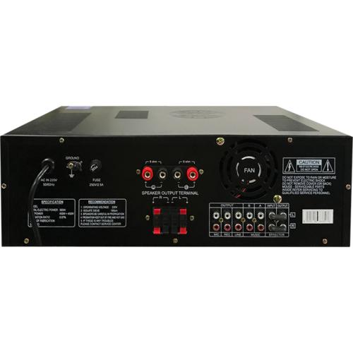 Mặt sau hỗ trợ quạt giải nhiệt giúp Amply luôn ổn định trong thời gian dài sử dụng.