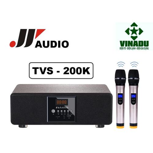 Giới thiệu sản phẩm Loa Bluetooth Karaoke kèm 2 Micro không dây cao cấp JY AUDIO 200K Bộ Soundbar Karaoke cao cấp JVAUDIO TVS-200K Tặng kèm 2 Micro không dây chính hãng 05 Lợi Ích Của Sound Bar Karaoke TV JYAUDIO TVS-200K-> Một Bộ Sound Bar TV Giúp cải thiện chất lượng loa của TV, với kiểu dáng sound bar khá hiện đại và cao cấp, công xuất loa lên tới 120W gồm 2 loa và 1 Bass lớn sẽ giúp bạn trải nghiệm những bộ phim và nghe nhạc hấp dẫn lôi cuốn hơn.-> Chỉ với bộ Sound Bar TVS-200k bạn đã có ngay dàn Karaoke không dây với 2 chiếc Micro karaoke không dây cao cấp (với giá trị 2 chiếc Micro này thông thường đã từ 1.500.000đ tới 2.000.000đ) giúp cả gia đình có thể thỏa mãn nhu cầu ca hát của cả gia đình. Hỗ trợ tùy chỉnh ECHO, Micro, Equailizer để chỉnh âm thanh karaoke khá chuyên nghiệp-> Kết nối dễ dàng với các thiết bị ngoại vi như Smart phone, Android Box, đầu phát, DVD, Máy Tính, Laptop... để thưởng thức chất lượng cao của âm nhạc-> Kết nối bluetooth Sound bar với Android box (qua bluetooth) hay Smart Android TV là các bạn đã có ngay 1 bộ dàn karaoke mini thông minh tại nhà. -> Nghe nhạc trực tiếp từ USB, Thẻ Nhớ Đặc điểm của bộ Sound Bar Karaoke Gia Đình TVS-200K
