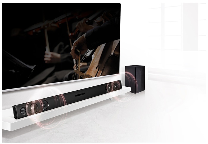 Kết hợp sự đơn giản của Soundbar với chất lượng âm thanh trầm như sấm để cung cấp cho bạn một môi trường âm thanh thực sự làm phong phú thêm. Các siêu sub-woofer đi kèm với LG Soundbar hoàn hảo, và cung cấp một trải nghiệm âm bass năng động và phong phú. Ngoài ra, với thiết kế không dây của nó, nó là siêu dễ dàng để thiết lập và điều chỉnh hệ thống giải trí gia đình của bạn.