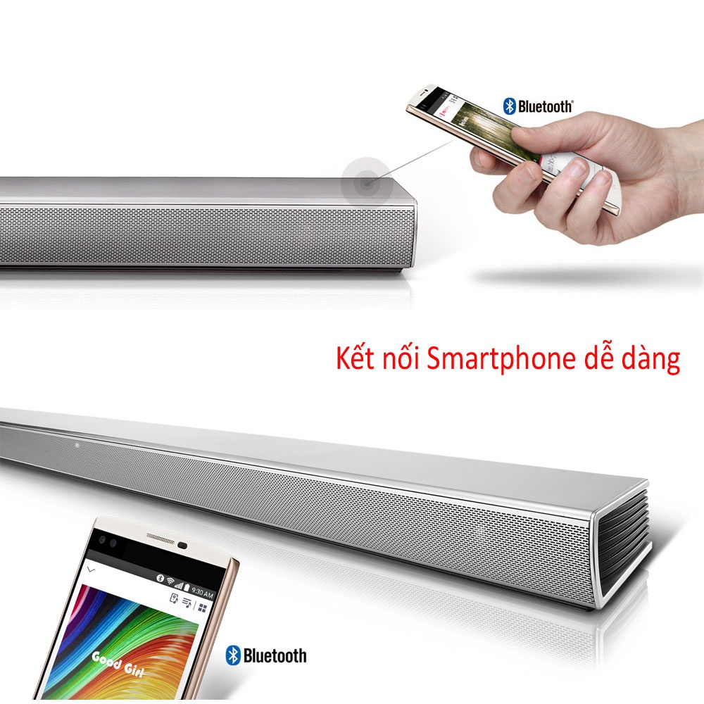 Nhờ vào khả năng kết nối Bluetooth, giờ đây bạn đã có thể thỏa sức tận hưởng âm nhạc của mình trên màn hình lớn cùng chất lượng âm thanh tuyệt vời với chỉ cần kích hoạt tính năng. Việc loại bỏ những kết nối dây rườm rà giúp cho thiết kế đặc biệt của chiếc TV và Loa vẫn giữ được nét thanh lịch, sắc sảo của mình, đồng thời không gian căn phòng cũng được tối ưu hóa toàn diện. Hơn thế nữa, bạn có thể khởi động và điều khiển âm lượng bằng Bluetooth thông qua Smartphones.