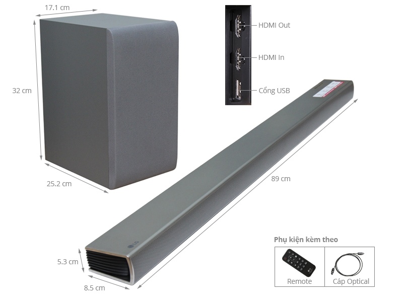 Loa chính:Cao 5.3 cm - Ngang 89 cm - Sâu 8.5 cm